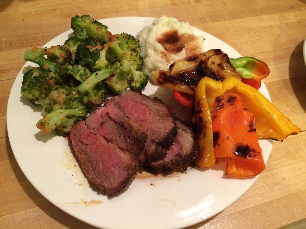 The meat is so flavorful that you don’t need any decorative condiments like a horseradish sauce or salsa verde. I’m not saying don’t, but you don’t have to. I like to serve my tri-tip with grilled peppers and tortillas or a salad or mashed potatoes and grilled broccoli (which can be made while the meat is resting).
